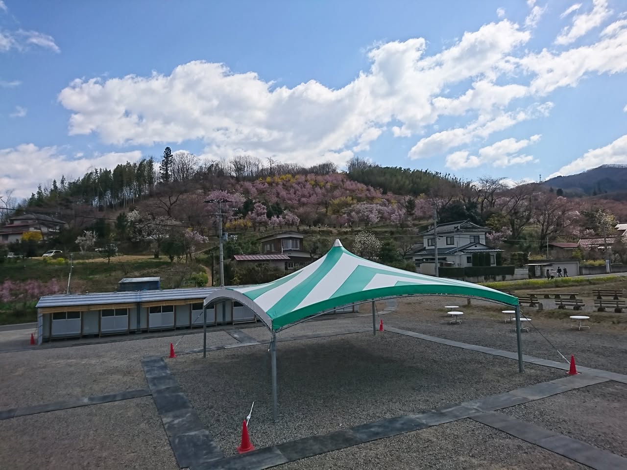 福島市の桃源郷花見山の出店店舗の上部サインを制作させていただきました。仮設店舗ではありますが、強風などにも配慮した作りにしております。