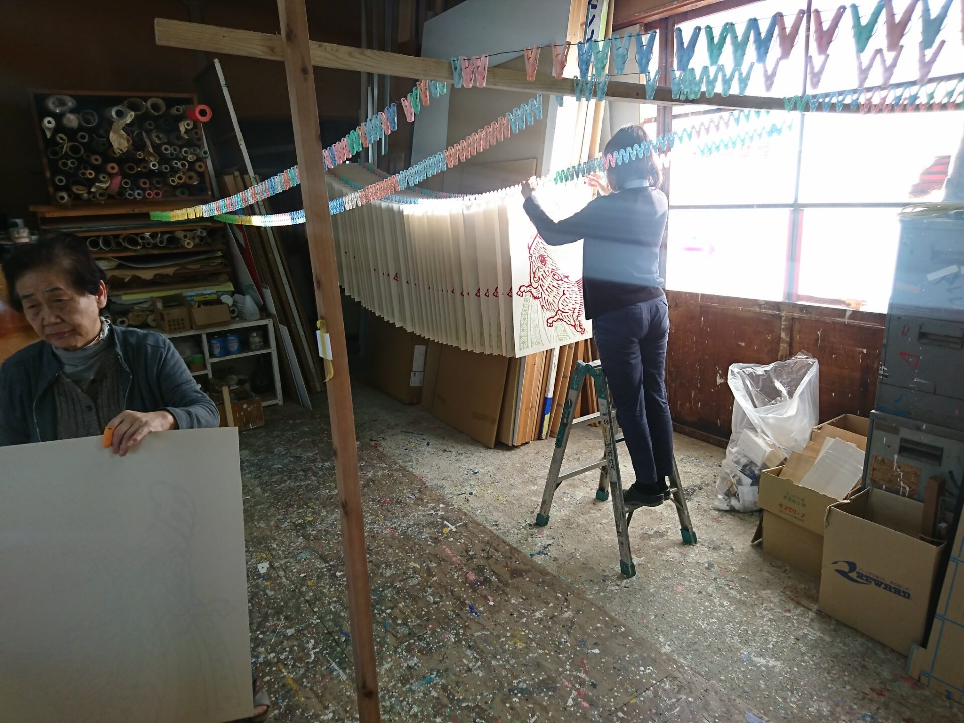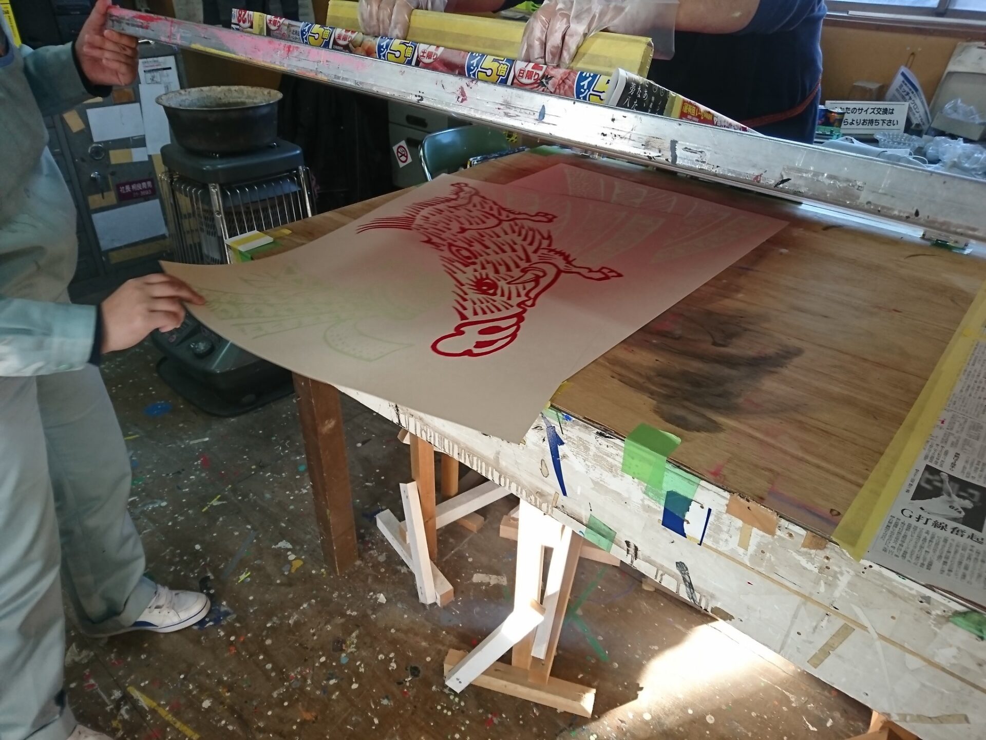 毎年12月に入ると自社で制作「謹賀新年」のシルク印刷のポスター制作が恒例になっております。